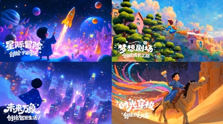 “星際冒險,創(chuàng)繪宇宙奇旅”鼓勵孩子們大膽描繪宇宙生態(tài)、太空城市等,激發(fā)對未知世界的探索精神;“夢想劇場,創(chuàng)繪成長之路”倡導(dǎo)發(fā)現(xiàn)自我、認(rèn)知自我,表達(dá)成長感悟與期許,讓作品成為寫給未來自己的溫暖信箋;“未來萬象,創(chuàng)繪智慧生活”聚焦以“問題解決者”視角構(gòu)想未來生活場景,思考如何讓技術(shù)更有溫度,用創(chuàng)造力回答“怎樣的未來值得期待”;“時光穿梭,創(chuàng)繪歷史新影”強調(diào)突破“古老”與“新潮”的界限,重新詮釋歷史符號,激發(fā)文化自信與創(chuàng)新表達(dá)。