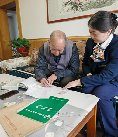 工作人員上門為殷大爺辦理業(yè)務(wù)