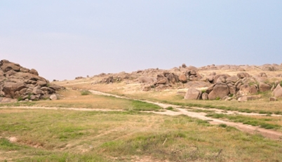 (圖:巖石裸露干旱少雨的烏蘭哈達(dá)嘎查)