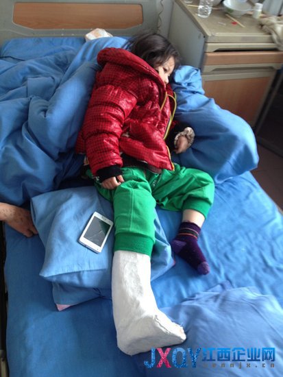 當(dāng)記者在江西樂(lè)平市第二人民醫(yī)院見(jiàn)到六歲女孩小穎時(shí),她的右腿已經(jīng)被打上了厚厚石膏,不能下地行走,醫(yī)院的病房?jī)?nèi)幾乎人人都在討論著小穎被醫(yī)生做錯(cuò)手術(shù)的事。小穎的母親劉雪梅告訴記者,孩子剛出生時(shí)左腿就有些問(wèn)題,父母更是帶她去上海做過(guò)手術(shù)。“開(kāi)了刀之后大概過(guò)了幾個(gè)月就會(huì)走路了,現(xiàn)在走路就是左腿有點(diǎn)拖動(dòng)。”