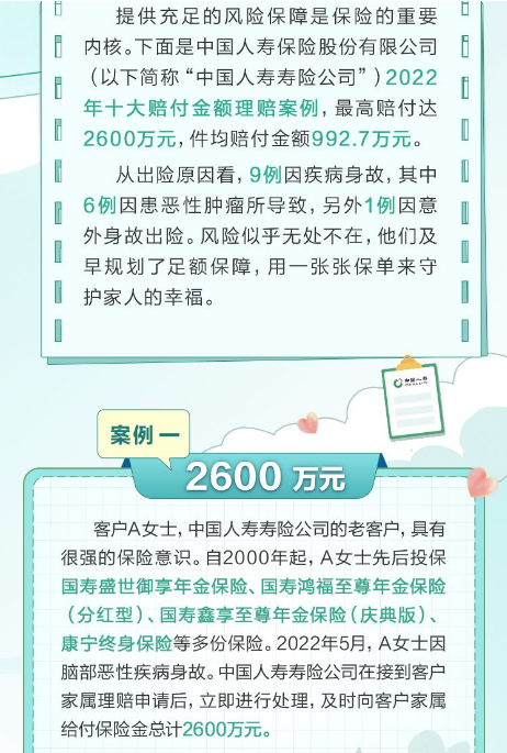 中國人壽2022年十大理賠案例 最高賠付達2600萬元