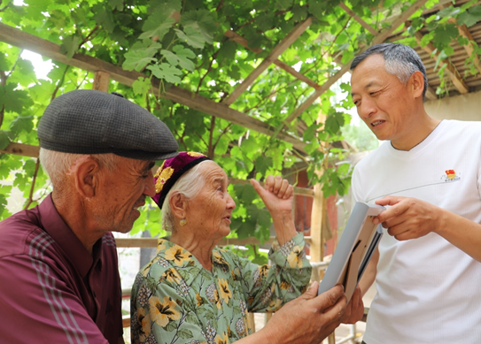 工作人員上門為客戶許奶奶辦理業(yè)務(wù)
